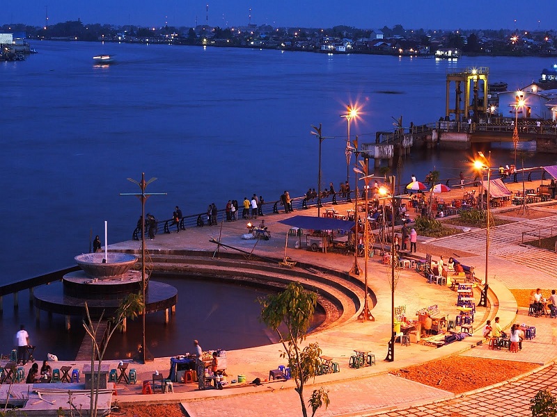 - Waterfront Pontianak: Area pejalan kaki modern di sepanjang Sungai Kapuas ini menawarkan suasana yang hidup namun tetap menenangkan. Deretan kafe dan restoran di sekitarnya memungkinkan Anda menikmati hidangan sambil menyaksikan perahu-perahu melintas dan gemerlap lampu di malam hari.